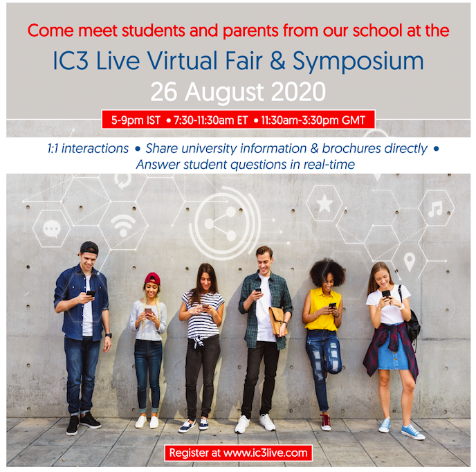 I am delighted to share that we have been invited along with a select group of schools around the world to participate in the IC3 Live Virtual Fair & Symposium event, organized by the IC3 Movement, on 26 August 2020 from 5-9pm IST