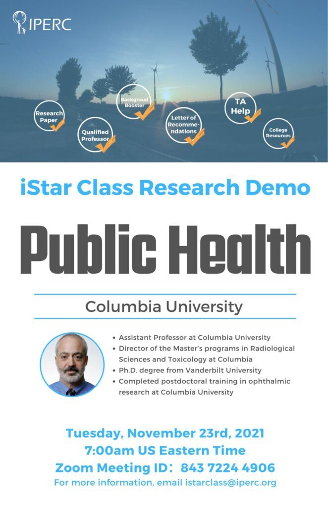 November 20, 2021Classroom session on – Public Health a study on Bio Science area to be conducted jointly by Columbia University and IPERC Academy USA