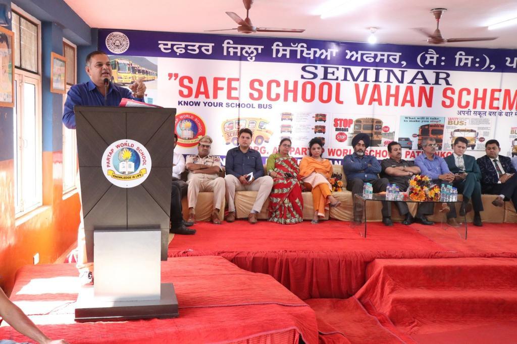 October 23, 2019100+ Private Schools of Pathankot participated in a Seminar on ‘Safe School Vahan Scheme’ at Partap World School, Pathankot.