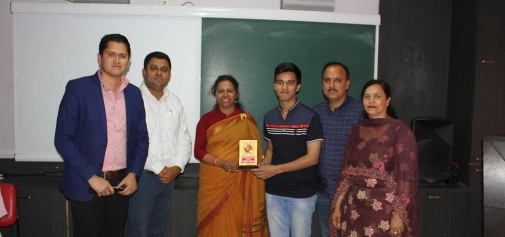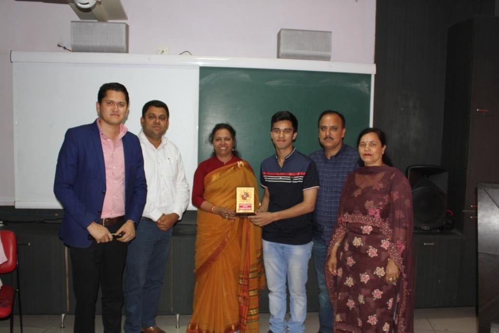 The student was felicitated among all staff members.