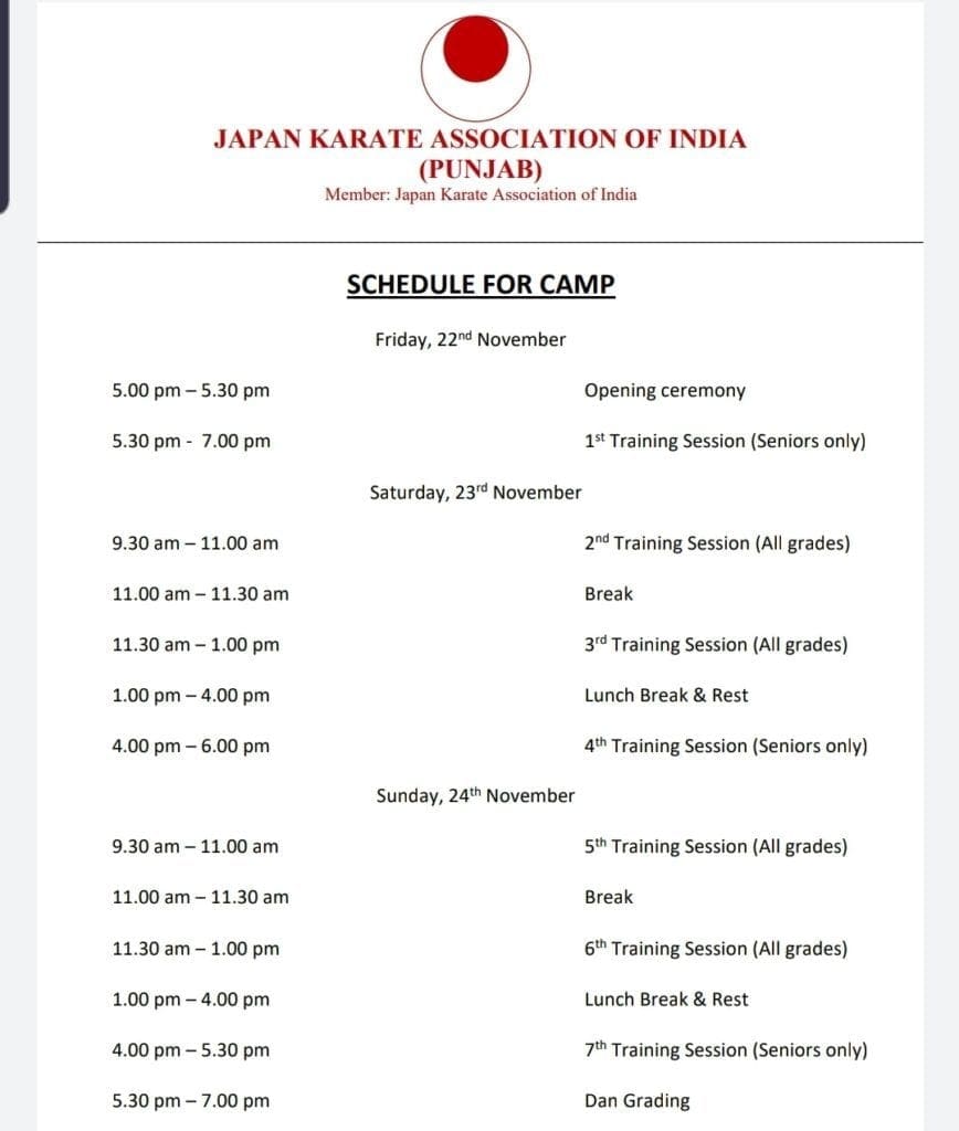 SCHEDULE FOR THE TRAINING CAMP