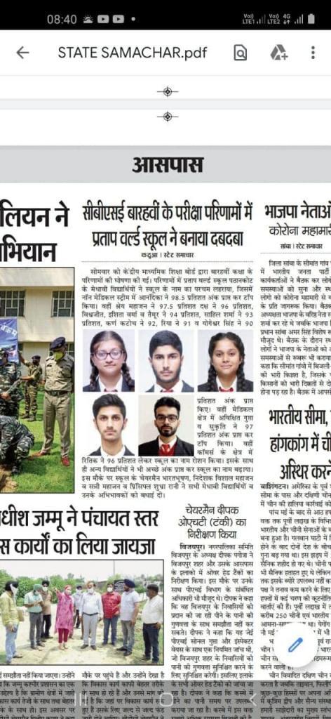 July 24, 2020The Central Board of Secondary Education (CBSE) has announced class 12th results. This year also Students of Partap World School bagged top positions (Medical & Non-Medical) in District Pathankot. Congratulations to all the Students, Teachers and Parents.